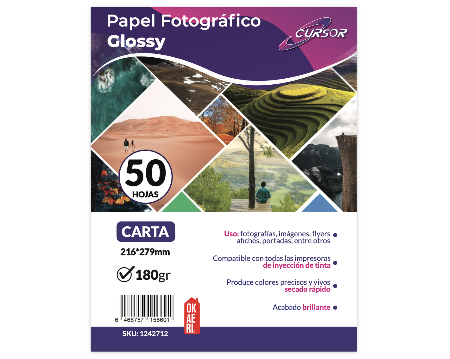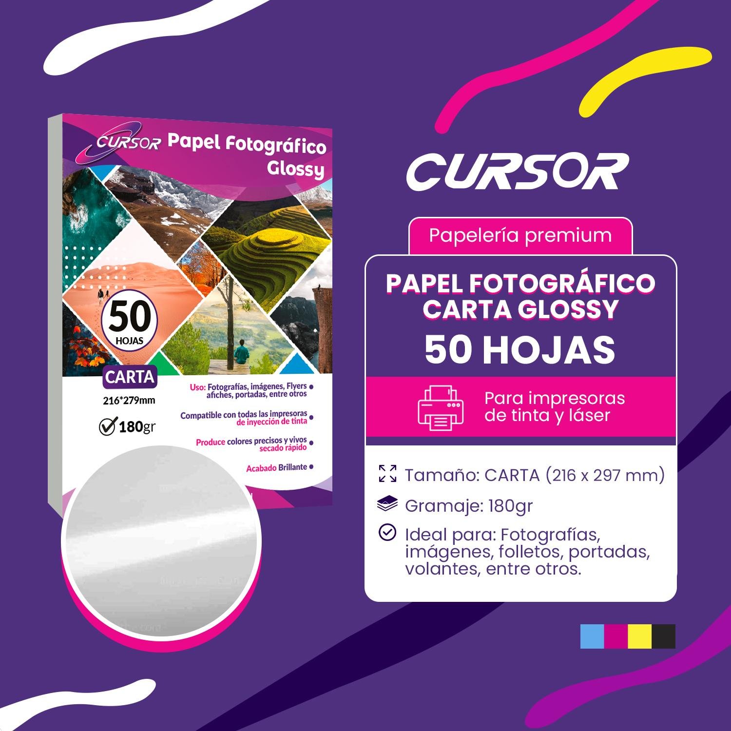 PAPEL FOTOGRAFICO 180g. CURSOR CARTA GLOSSY 50 HOJAS BRILLANTE