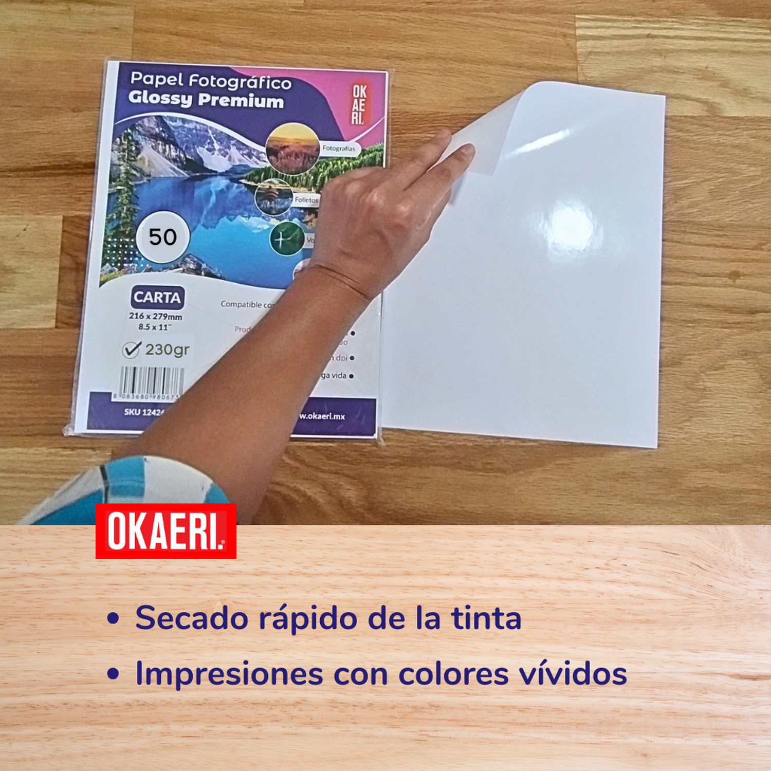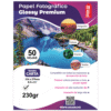 - Papel fotográfico glossy de 230g/m² con acabado brillante y profesional.