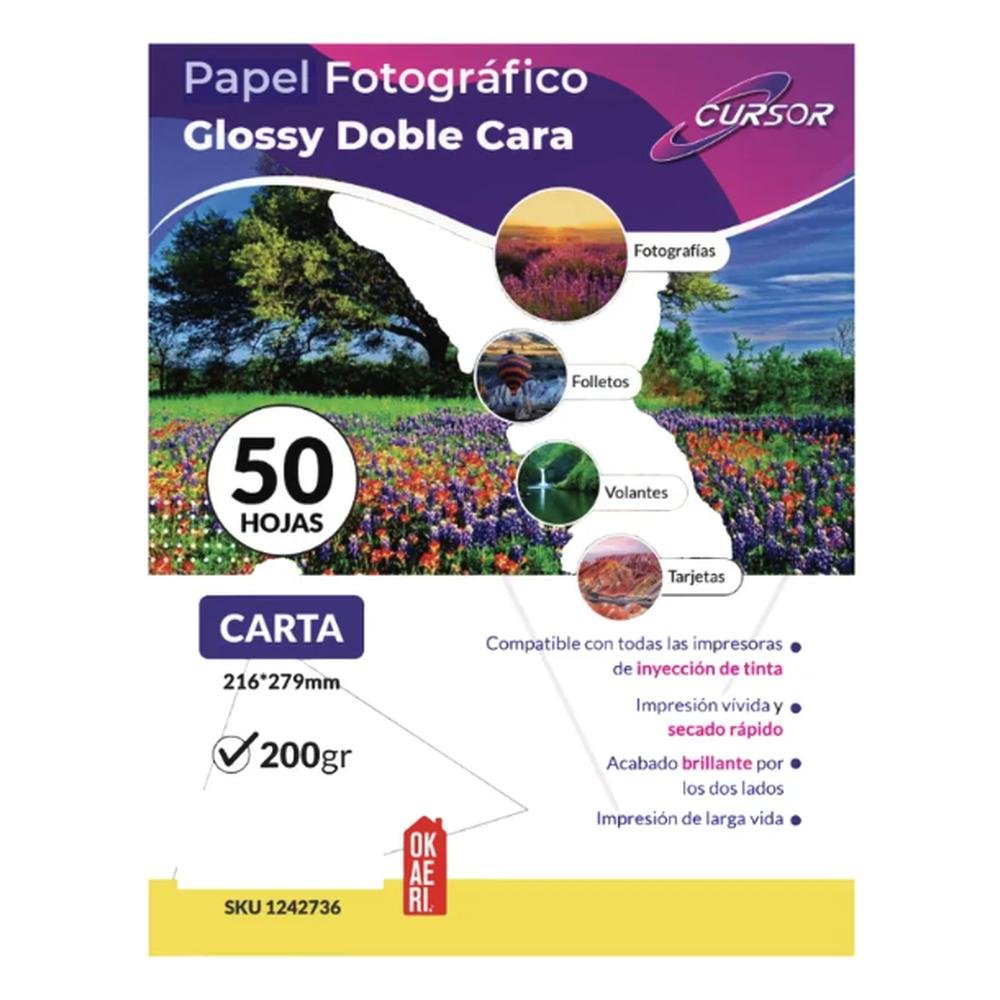 Papel fotográfico GLOSSY doble cara 200g 50 hojas CARTA CURSOR