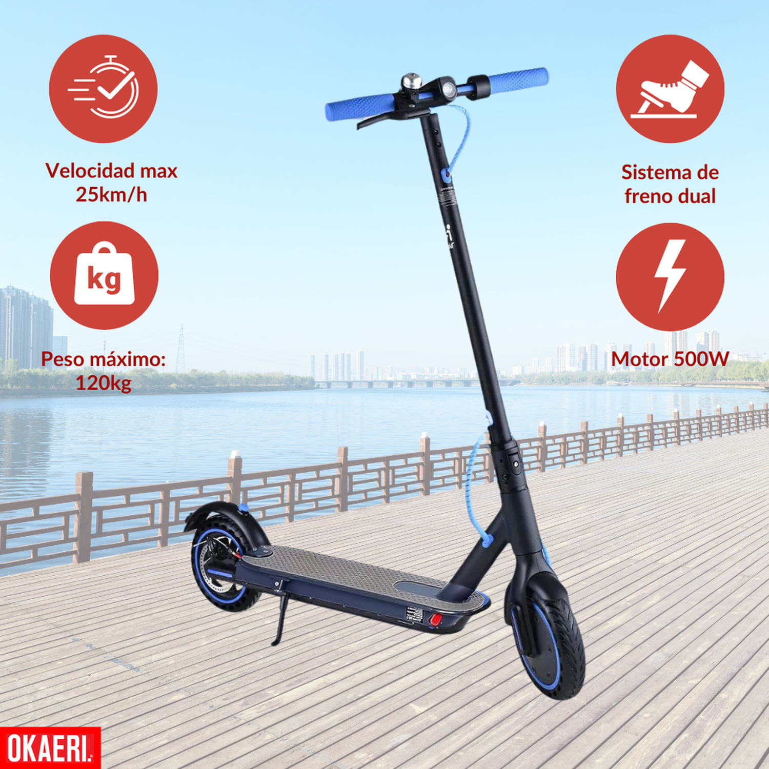 Scooter Eléctrico Patín Plegable Todo Terreno 500W OKAERI cantidad