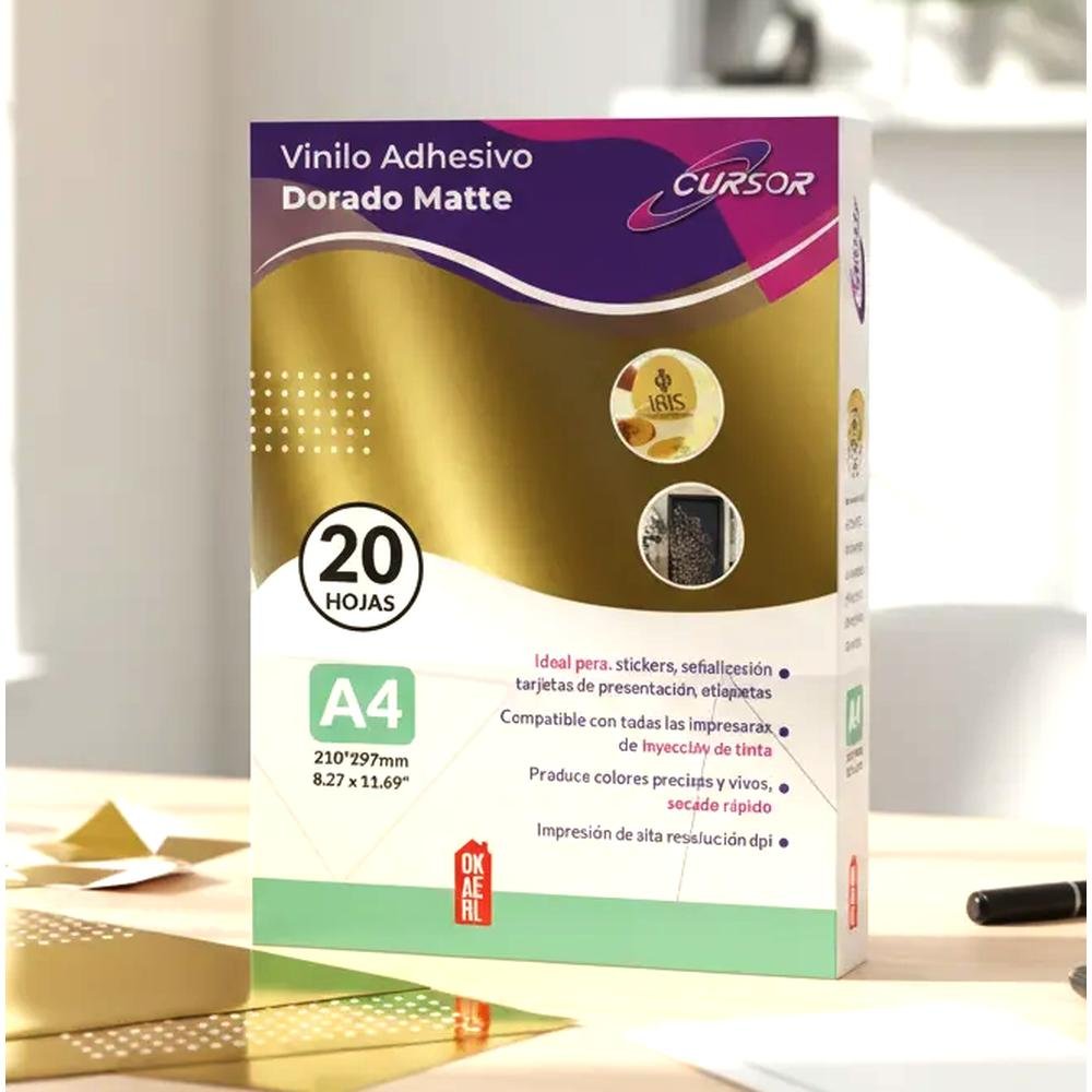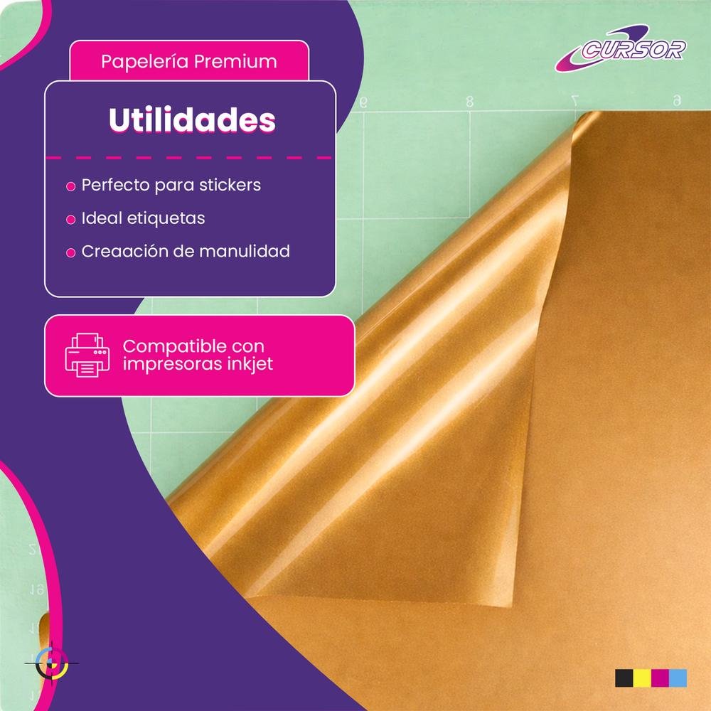 Vinilo Adhesivo Dorado Cursor Imprimible Mate A4 20 Hoja Ink